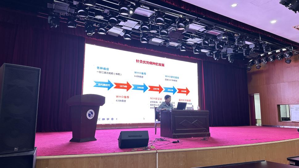 在“针圣故里话针灸”系列讲座中,中国针灸学会秘书长、中国中医科学院针灸研究所所长景向红研究员以“针灸优势病种研究现状”为主题,结合自己多年临床经验,从针灸优势病种的发展到基于临床证据体的针灸疾病图谱研究应用,流畅有序、内容丰富,通俗易懂,使同学们领悟到了针灸治疗的魅力所在。