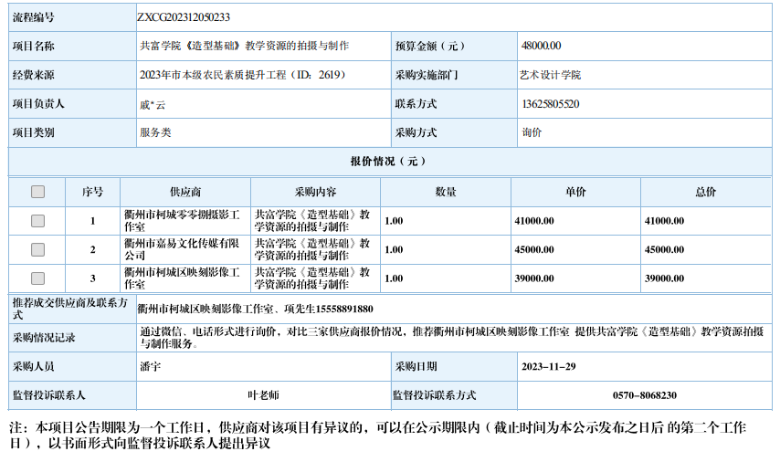 开元网页版共富学院《造型基础》教学资源的拍摄与制作自行采购信息公示