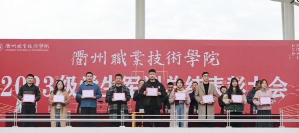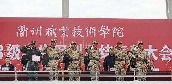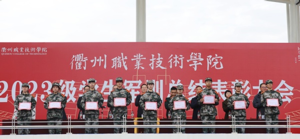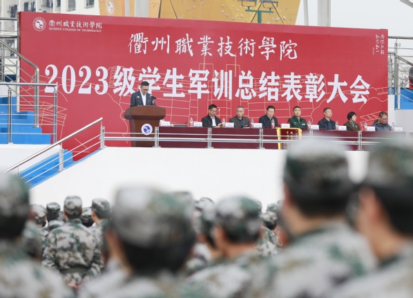 演兵落帷幕,青春勇登场!12月10日上午,我校2023级学生军训总结表彰大会在学校田径场举行!校党委书记徐须实,武警衢州支队副支队长陈海宾,党委委员、纪委书记方焕云,党委委员、副校长余建军、徐浪静、姚水洪,党委委员、宣传部长孔庆红出席,党委委员、组织部长周帅出席,党委副书记何百通主持。
