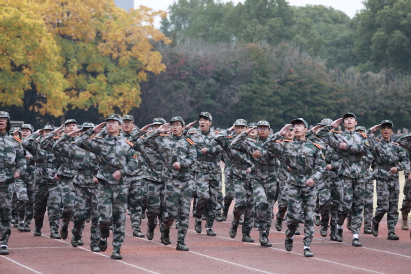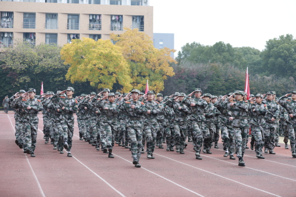 校党委书记徐须实讲话。他希望同学们要坚定报国信念,筑牢爱党爱国理想基石。要在关注学业与就业的基础上,要把听党话、跟党走变成自觉追求,坚定理想信念,把个人成长与国家需求结合在一起,立大志、明大德、成大才、担大任,以只争朝夕的姿态和拼劲,走好自己的大学旅程,在传承红色根脉中实现人生价值;以自强报国的信念和担当,勇挑历史使命,在实现中国梦的生动实践中放飞青春梦想。要珍惜大学时光,勤奋笃学成就更好自己。大学既是追逐个人梦想的舞台,也是改变未来命运的钥匙。要在大学期间刻苦学习,保持终身学习、持续学习理念,巩固好、转化好军训成果,把军训期间养成的良好习惯保持下去,坚持体育锻炼,坚持自觉学习,在实践中经风雨长才干,在知行合一中练就过硬本领。要注重全面发展,实践历练增强能力本领。根据自己的兴趣爱好参加各种社团、技能竞赛、文体活动、社会实践、公益活动,坚持德智体美劳全面发展的理念,在学好专业课的同时,勇于报名参加各类专业竞赛、各类社团活动,在竞赛和各种活动中锻炼自己、提高自己,为未来发展做好积累、为进入社会做好充分准备。