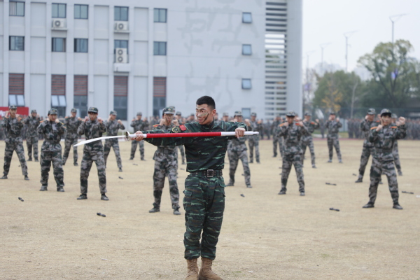 女生匕首操、男生擒敌拳表演动作干脆利索、气势如虹!方寸之间将衢职学子顽强拼搏、奋勇向前的精神面貌展现得淋漓尽致!