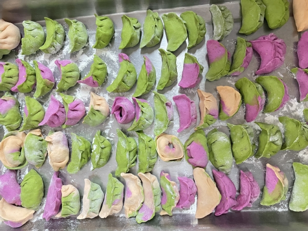 一盘盘热腾腾的饺子整齐地摆满了桌面。这些饺子不仅美味可口,更承载了学校的温情和对老师的关爱。老师们纷纷表示,能和大家在一起包饺子感觉很幸福、很温暖。非常感谢学校让老师们度过了一个难忘的冬至。