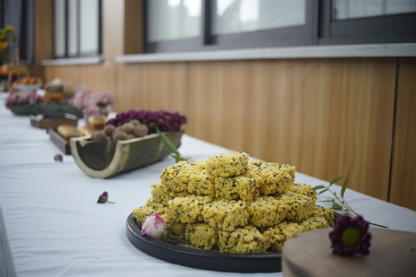 工作人员现场演示冬季养生糕的做法。