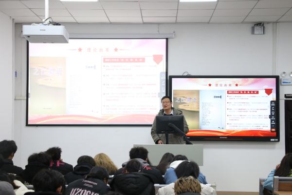“形势与政策”课是理论武装时效性、释疑解惑针对性、教育引导综合性都很强的一门高校思想政治理论课。为深入贯彻落实习近平总书记在学校思想政治理论课教师座谈会上的重要讲话精神,进一步推动学习贯彻习近平新时代中国特色社会主义思想主题教育走深走实,近日,校党委书记徐须实,党委副书记、校长吕延文和其他校领导班子成员深入思政课堂一线,与全体思政理论课教师一起,面向全体大一、大二学生进行专题授课。