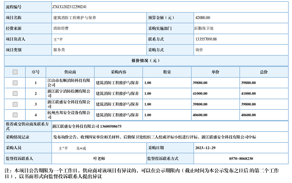 开元网页版建筑消防工程维护与保养自行采购信息公示