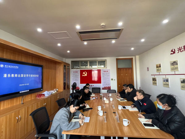 1月10日下午,学校人事处(教师发展中心)举办潘乐教师出国访学行前培训会。校党委委员、组织部部长周帅,人事处(教师发展中心)处长倪立宠,文化旅游学院党总支书记李威、文化旅游学院院长郭大勇等班子成员,党委办公室(国际合作交流处)副主任吴琳参加。