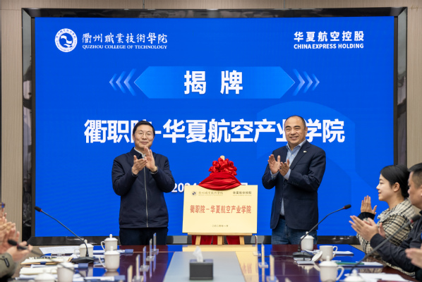 张工、徐须实为衢职院-华夏航空产业学院揭牌。