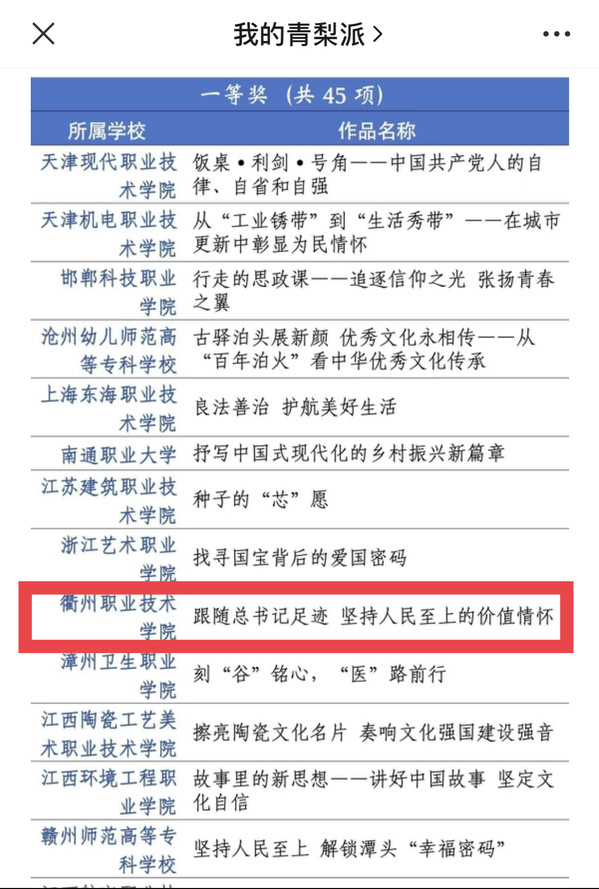 近日,教育部组织的习近平新时代中国特色社会主义思想大学习领航计划主题教育活动获奖名单公示出炉!我校马克思主义学院选送的作品《跟随总书记足迹 坚持人民至上的价值情怀》荣获第七届全国高校大学生讲思政课公开课展示活动一等奖。在去年获全国三等奖的基础上又取得了新的突破。