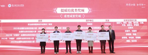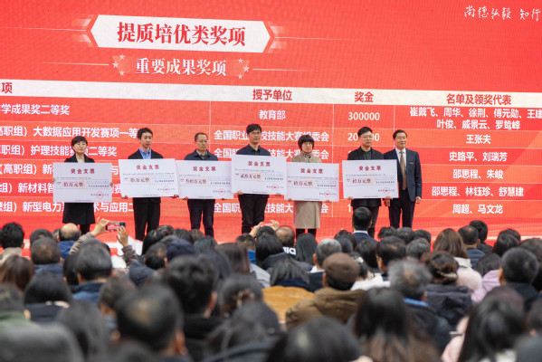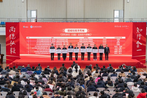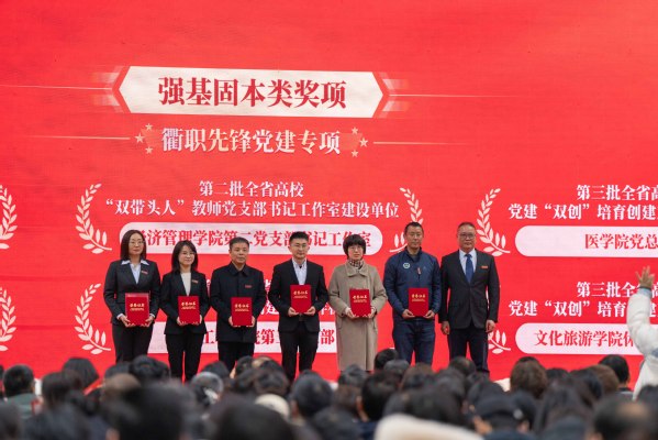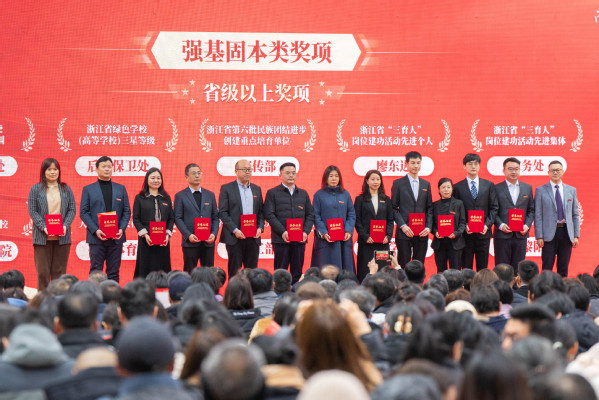 青年教师以《回望2023,衢职这一年》为题,深情回顾过去一年学校在创“双高”、强服务、育人才等方面取得的累累硕果。大会对2023年获“强基固本”“增值赋能”“提质培优”三大类国家级、省级奖项和荣誉的优秀团体和个人进行了隆重表彰。