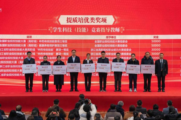 吕延文为教师创新团队、浙江省职业教育在线精品课程和“十四五”职业教育国家规划教材奖项颁奖。