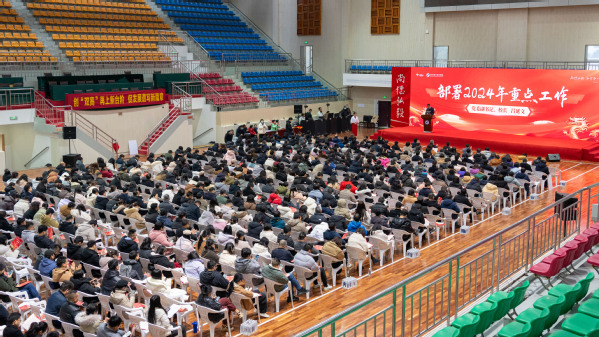 徐须实作新学期开学讲话。他回顾了我校2023年在党的建设、内涵发展、人才培养、科学研究和服务地方发展等方面取得优异成绩。他指出,2024年是新中国成立75周年,是学校“十四五”规划的攻坚之年,也是“双高”建设再出发之年,做好2024年的工作十分重要。一是要知大势,聚焦“政策红利”抢抓机遇乘势而上。面对当前良好的发展机遇、政策红利,全体教职员工要付出比常人更多的努力,以更高的智慧、更猛的拼劲、更实的作风、更大的担当,才有可能后来居上、拼得先机、争得佳绩。二是要明目标,聚焦“双高”建设持续精准发力。要对标对表“双高”建设三年行动目标,教育部现代职业教育体系“一体两翼五重点”11项重点任务和新一轮“双高”建设申报要求,持续精准发力,力争在新一轮“双高”建设项目比拼中争先晋位,为学校高质量发展夯实基本盘,为职教本科建设奠定坚实基础。三是要重实干,聚焦“六个发展”提升综合办学实力。以党建领航发展、创新发展、内涵发展、融合发展、开放发展、健康发展等“六个发展”为新一年的工作理念、工作要求和重点任务,各二级学院、部门(单位)和全体教职员工要认真学习领会,并紧密结合各自实际,主动寻标对标、达标创标,扑下身子、真抓实干,全面推进学校综合办学实力再提升。四是要强队伍,聚焦“衢职先锋”锤炼工作作风。要持续巩固拓展主题教育成果,坚持“衢职先锋”党建品牌引领,把争先作为永恒主题,把务实作为工作底色,把担当作为鲜明标识,把高尚师德作为不懈追求,持续打造勤廉并重干部队伍、德艺双馨教师队伍。