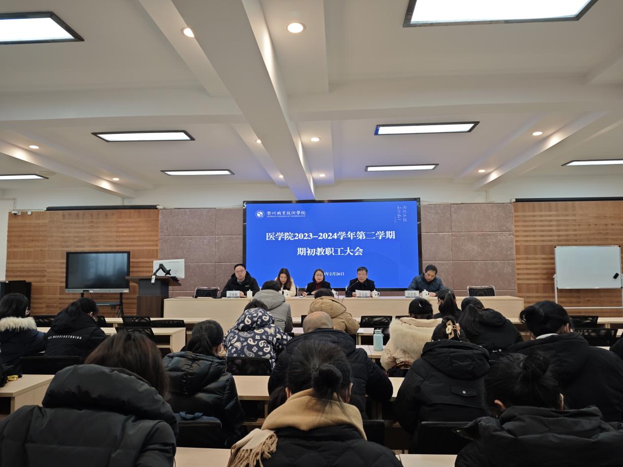 为落实学校“新春第一会”精神,扎实推进医学院各项工作有序开展,明确新学期目标任务和各项重点工作,2月26日下午,医学院在实训楼一楼多功能厅召开2023-2024学年第二学期期初教职工大会,会议由党总支书记余文富主持,全体教职工参会。