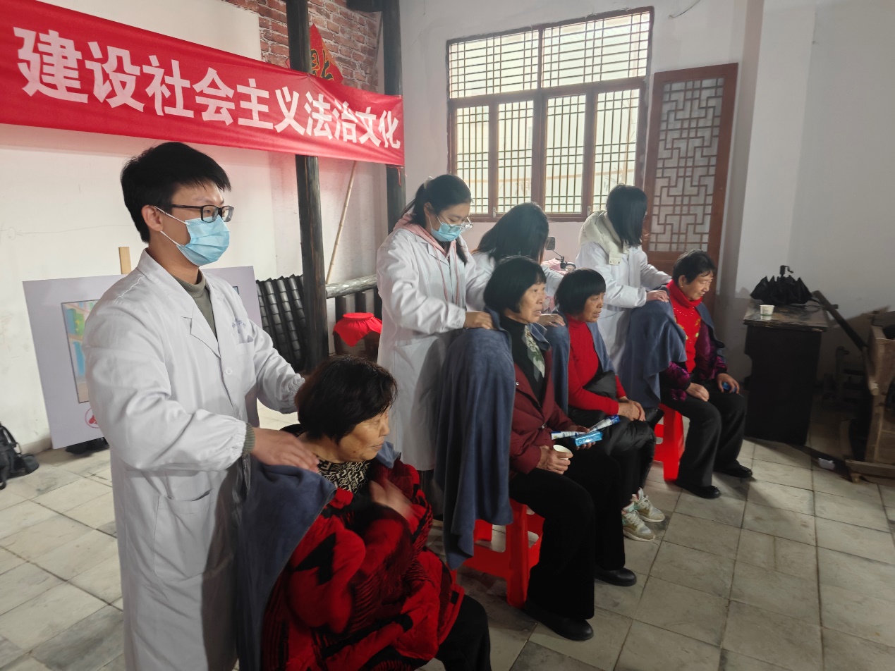 活动现场,前来参加活动的居民络绎不绝。志愿者们为现场的村民们递上了春季养生茶,为村民们进行春季健康养生科普,提出科学饮食,改变不良习惯,加强身体锻炼,并为他们提供健康咨询。师生志愿者们还为需要的村民进行免费的推拿治疗,让群众真正享受到“家门口”的优质医疗服务。