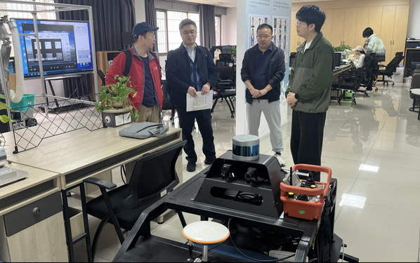 交流活动前,马文龙带领特聘刘华平杰青团队参观了工业互联网智能制造实训基地、工业互联网产学研综合体,介绍了学院自启动高水平专业群建设以来所取得的教学、科研、社会服务标志性成果。与相关研究教师探讨了研究方向与平台建设相关情况。