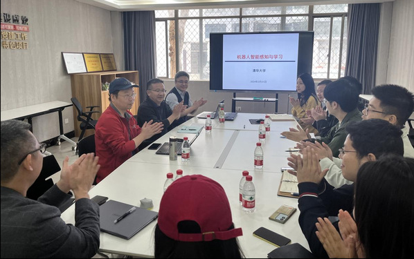 活动上,马文龙首先代表学院向远道而来的两位教授表示欢迎。接着,刘华平作《机器人智能感知与学习》专题报告,提出单体智能到多机器人协同上感知、学习、控制之间的关系,从机器视觉角度展示深度学习、大模型技术等训练与使用的最新研究成果,分享机器人前沿知识领域“具身智能”的理论与实践。