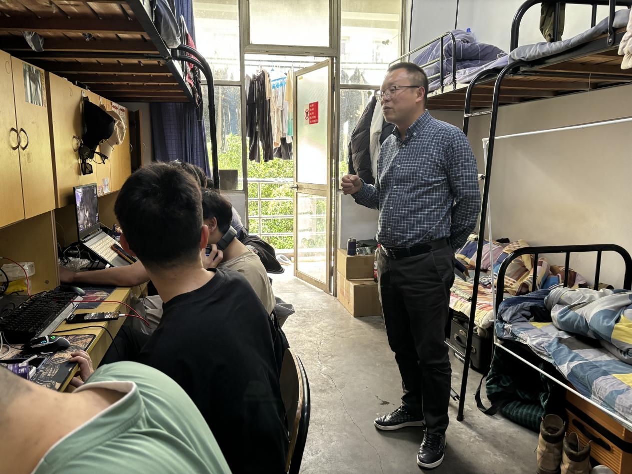 会后,廖建平带队,深入学生公寓二幢、三幢、五幢开展全方位走访,全面了解同学们的学习生活、实习实践、寝室卫生、实际需求等,切实做好学院寝室安全隐患排查工作。