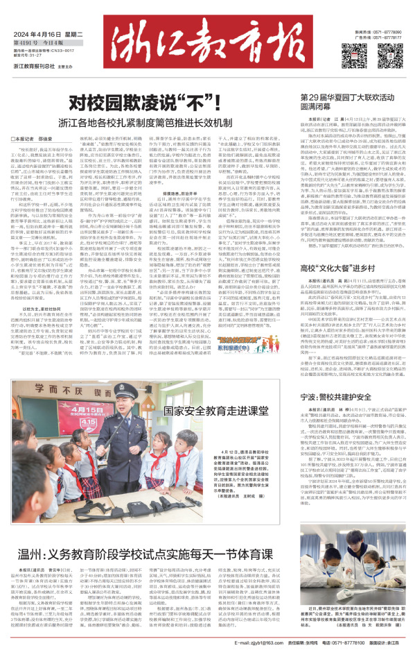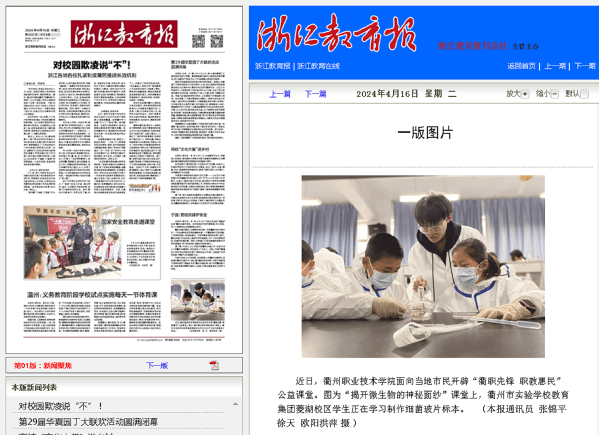 《浙江教育报》头版 (本报通讯员 张锦平 徐 天 欧阳洪萍 摄)