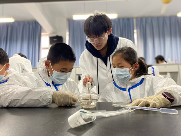 近日,开元网页版面向当地市民开辟“衢职先锋 职教惠民”公益课堂。图为“揭开微生物的神秘面纱”课堂上,衢州市实验学校教育集团菱湖校区学生正在学习制作细菌玻片标本。