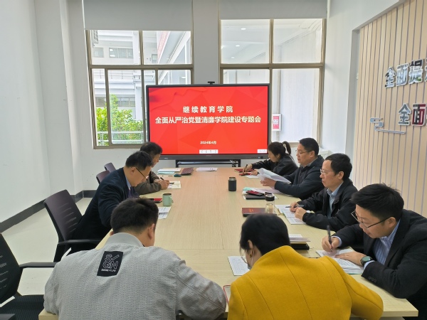 4月10日上午,继续教育学院召开2024年全面从严治党暨清廉学院建设专题会议,会议由支部书记戚景云主持,全体党员教师参加。