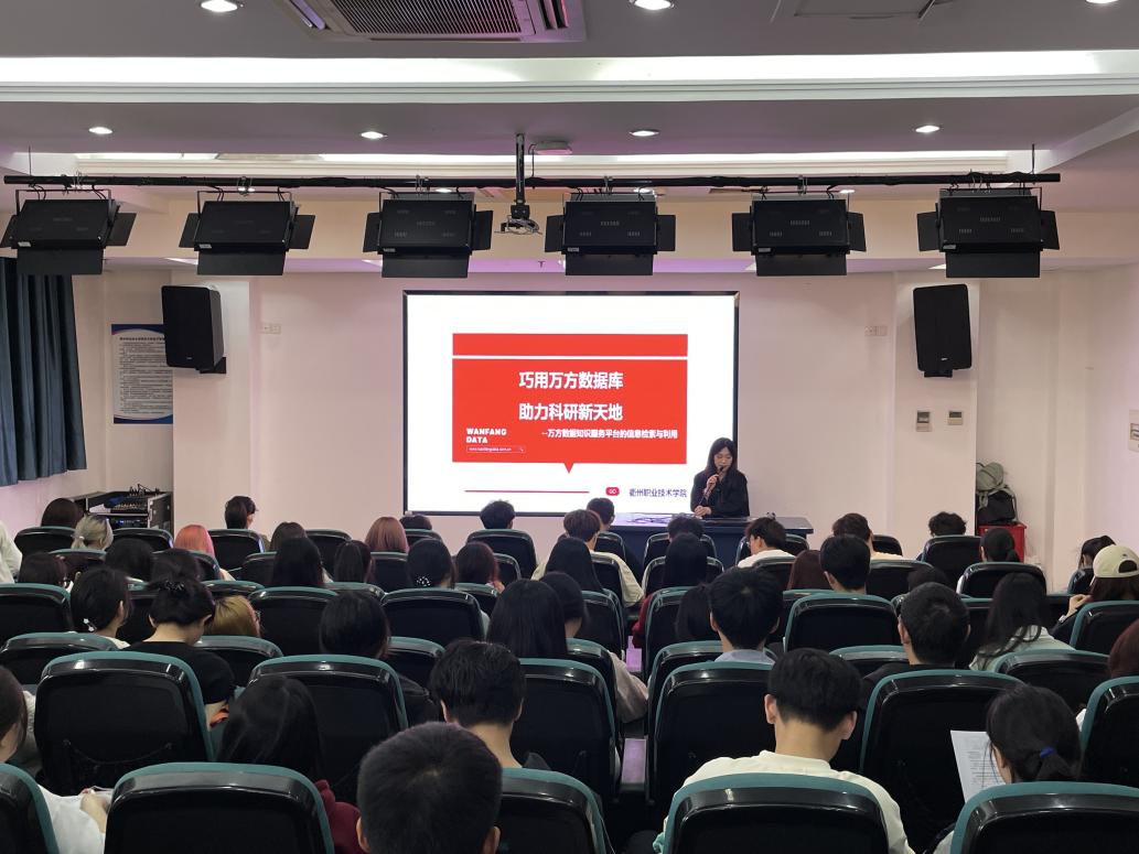 随后,图书馆联合万方数据举办了知识服务平台使用培训讲座。培训会上,万方数据知识服务平台讲师蔡晓薇从“快速了解万方数据知识服务平台”“如何快速精准获取文献——平台检索攻略”“如何快速精准利用万方医学网”等三个方面,详细讲述了如何利用万方数据知识服务平台助力高效检索科研文献、进行论文选题、文献管理,助力开拓科研视野,加速创新性科学研究。还通过案例实操等方式展示了在信息时代,检索能力与信息素养对于准确获取有效信息的决定作用。