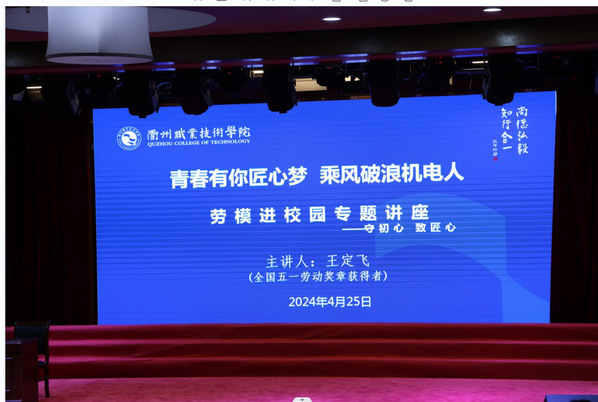 4月26日,机电工程学院在图书馆一号报告厅开展“青春有你匠心梦 乘风破浪机电人”主题教育活动--“劳模进校园”专题讲座。本次活动邀请了“全国五一劳动奖章”获得者、现任浙江巨化检安石化工程有限公司检修班班长、高级技师王定飞。机电工程学院院长魏小华主持讲座,机电工程学院全体大二年级在校生参加。