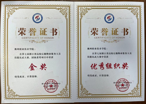 近日,浙江省教育后勤基建协会零碳校园管理专业委员会公布2023年度浙江省高校能源管理与服务工作优秀集体名单,我校光荣上榜。同时,浙江省教育后勤基建协会物业管理专业委员会举行第七届浙江省高校后勤物业服务人员技能比武大赛颁奖典礼。我校斩获单人两银三铜,并荣获团体金奖和优秀组织奖。