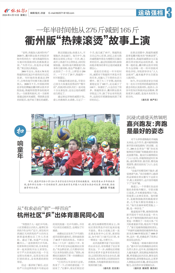 如今,毕业回到老家台州成为一名实习中医师的陈超阳依然感念母校以及拔河队,他表示,分享中医知识和拔河运动精神,帮助更多人减肥,是他未来的努力的方向。
