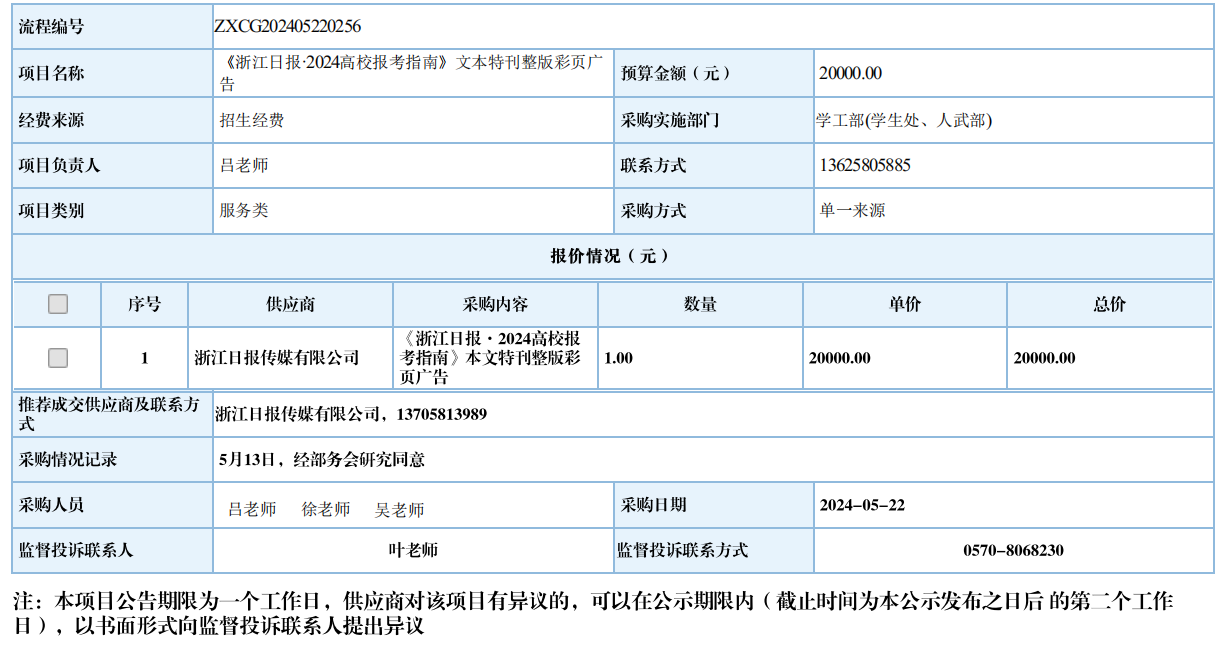开元网页版《浙江日报·2024高校报考指南》文本特刊整版彩页广告自行采购信息公示