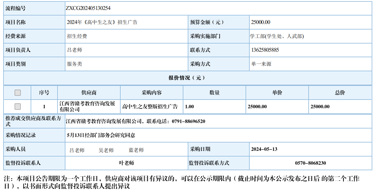 开元网页版2024年《高中生之友》招生广告自行采购信息公示