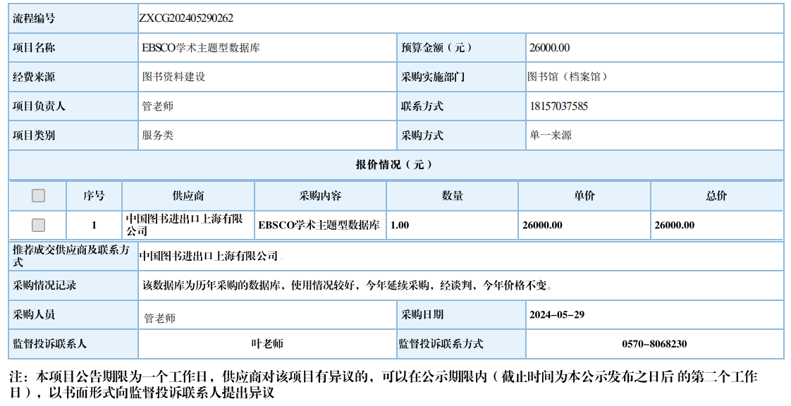 开元网页版EBSCO学术主题型数据库自行采购信息公示
