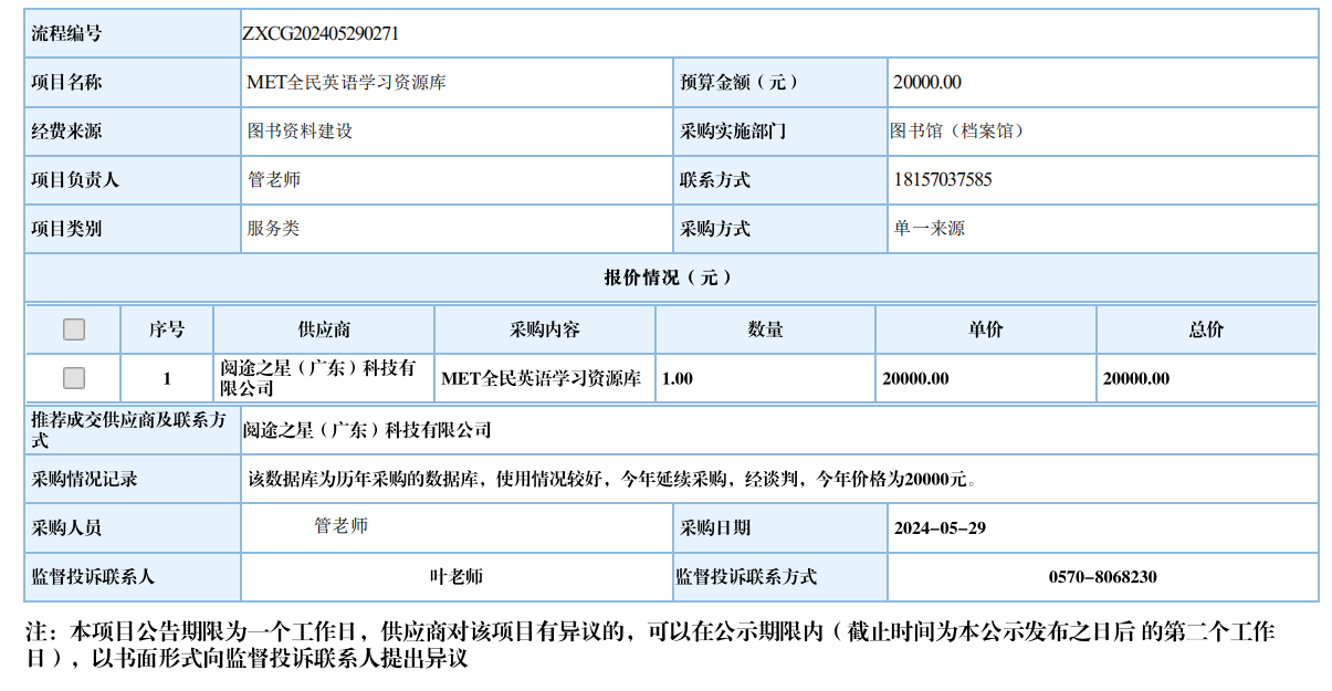 开元网页版MET全民英语学习资源库自行采购信息公示