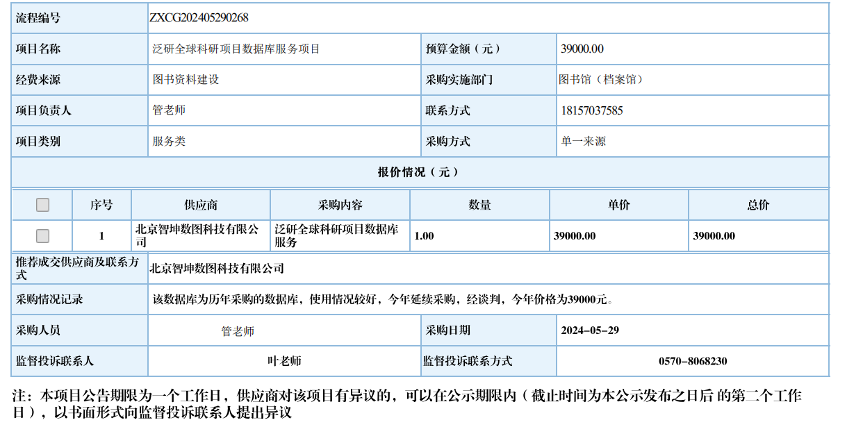 开元网页版泛研全球科研项目数据库服务项目自行采购信息公示
