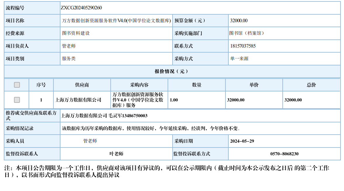 开元网页版万方数据创新资源服务软件V4.0(中国学位论文数据库)自行采购信息公示