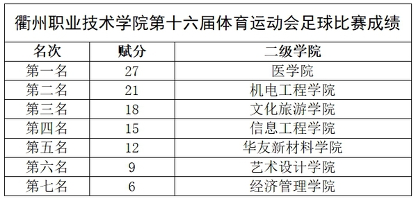 为丰富我校学生课余生活,增强学生体质,培养学生终生体育意识,2024年5月15日至6月17日,我校举行了第十六届体育运动会足球比赛,各个学院积极参与,共享足球运动的快乐。