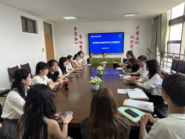 为做好有温度的教育,凝聚校友力量,进一步加强学校与毕业生之间的沟通交流,做好毕业生持续性关注和服务工作。6月13日中午,医学院在9楼会议室召开2024届优秀校友座谈会。医学院班子成员、全体校友大使参加,会议由党总支副书记周贞主持。