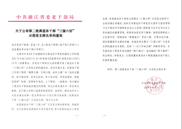 近日,中共浙江省委老干部局公布了第二批离退休干部“三强六好”示范党支部名单,我校退休党支部成功入选。