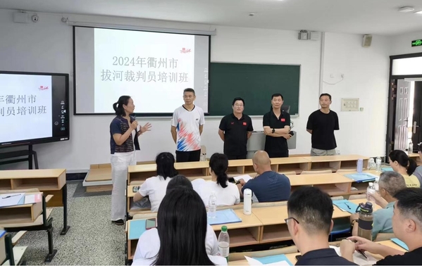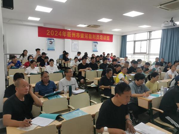 为进一步加强衢州市拔河裁判员队伍建设,培养全市具有发展潜力的中青年裁判骨干,提高裁判员业务水平,2024年6月27日至29日,衢州市体育局、衢州市拔河协会在我校举办了衢州市晋升拔河二级、三级裁判员培训班。