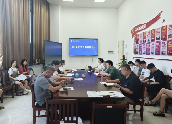 7月5日下午,文化旅游学院在体育运动中心一楼会议室召开学期末全体教职工工作会议。会议由学院党总支书记李威主持,文化旅游学院全体教职工参会。