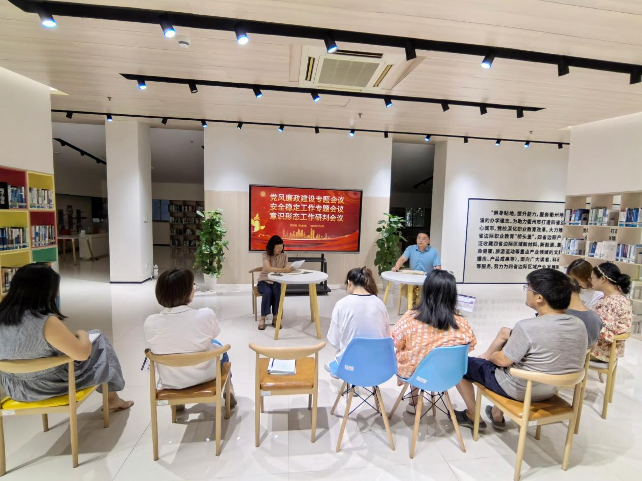 7月6日下午,图书馆(档案馆)在四省边际产业资料中心召开全体教职工集中政治理论学习暨期末教职工大会,会议由图书馆(档案馆)馆长夏武祥主持,部门全体教职工参会。