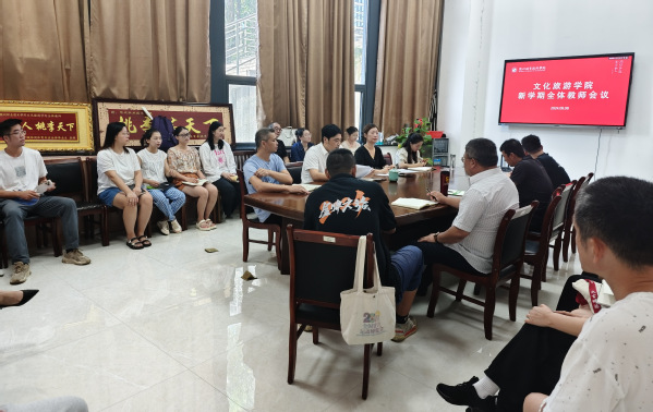 9月6日上午,文化旅游学院召开新学期全体教师会议。会议由院长郭大勇主持,党总支书记李威,副院长黄志国、彭晓倩出席,学院全体教职工参会。