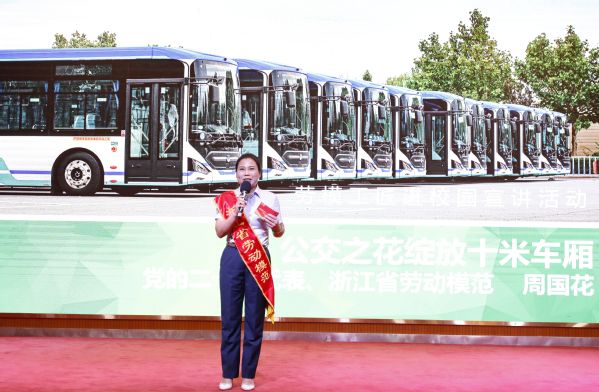 周国花以《公交之花绽放10米车厢》为主题,结合自己工作经历,声情并茂地与同学们分享了她的劳动成长故事。手握方向盘近30年,周国花总是秉承“微笑多一点,嘴巴甜一点,语气柔一点,度量大一点,仪表美一点,服务好一点”的“六个一点”服务方法,心中有光,眼中有爱,在平凡的岗位书写不平凡的华章。