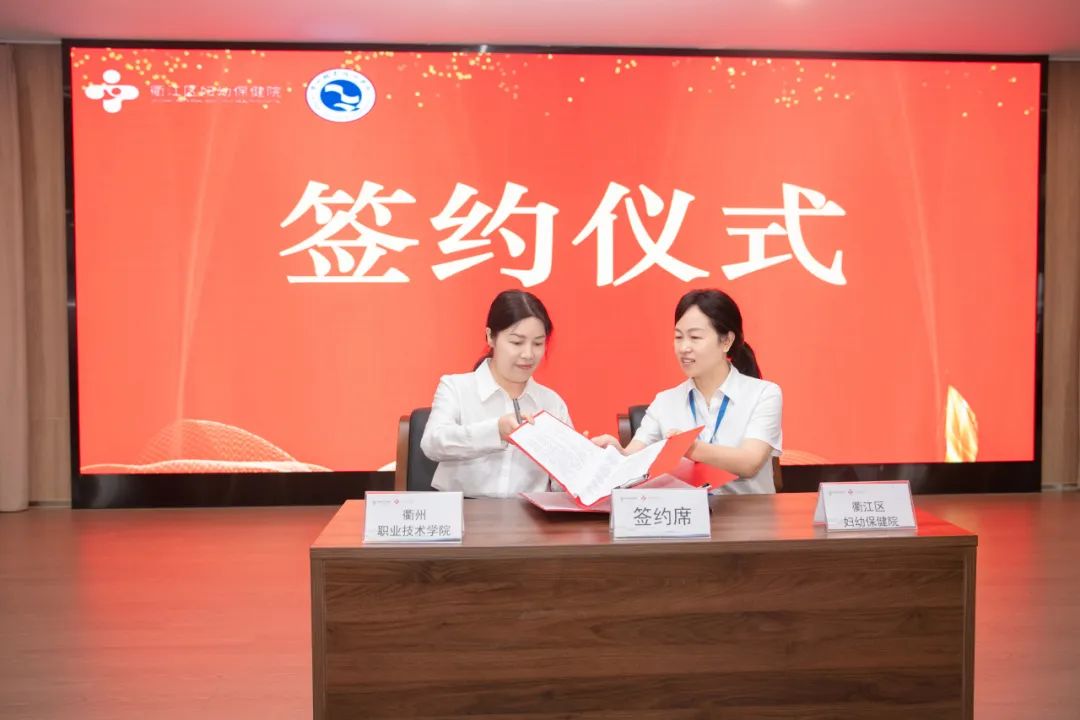 医学院党总支副书记周贞与区妇幼保健院党支部书记徐小芳共同签署实习基地合作协议