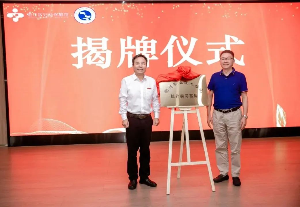 医学院党总支书记余文富与区卫健局党委书记、局长张文雄共同为实习基地揭牌