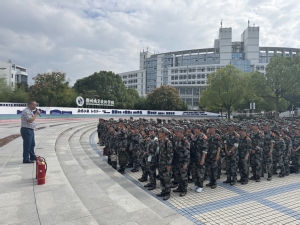 保卫干部深入各二级学院军训场地,采用“理论+实践”的教育模式,给同学们深入浅出地讲解了火灾预防理论知识、消防隐患辨识方法及应急扑救措施等基础性消防安全常识,并结合校园内消防安全重点工作,详细讲解了公寓内如何防范火灾发生、如何报告火警、如何正确使用灭火器等消防知识,并现场演示了干粉灭火器及二氧化碳灭火器的使用方法。