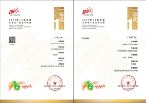 近日,第16届全国大学生广告艺术大赛(简称大广赛)落下帷幕,我校艺术设计学院师生获得国家一等奖2项、二等奖1项、三等奖2项、优秀奖5项,成绩喜人。获奖等级和获奖数接连突破和提升。国家一等奖分别是平面作品《你的温度我来守护》(指导老师:王昱惠)、平面作品《HBN水墨系列海报》(指导老师:任海燕);国家二等奖1项,营销创客赛道之网络直播(指导老师:王雪纯、刘琤);国家三等奖2项,分别是营销创客赛道之网络直播(指导老师:张皓鸣、刘琤)、影视广告《箱伴我行》(指导老师:龚一舟、王金星)。