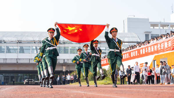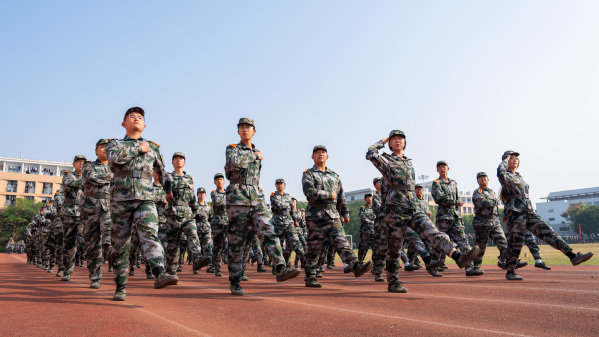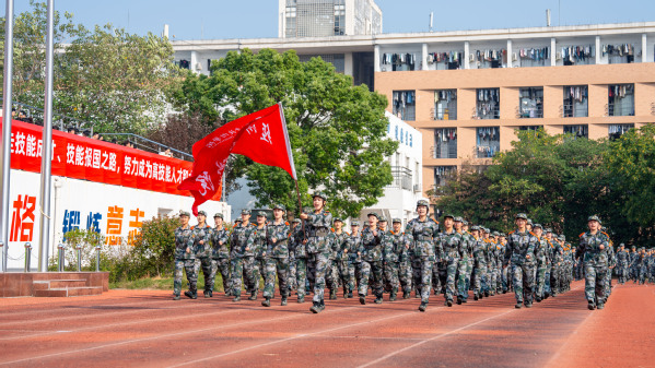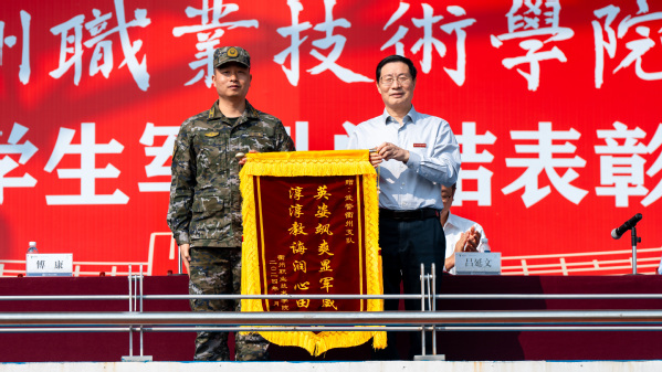 徐须实讲话。他说,青春当“立正”,要坚定信念壮筋骨。要传承守护红色根脉,把听党话、跟党走变成自觉追求,坚定理想信念,把个人成长与国家需求结合在一起,立大志、明大德、成大才、担大任,以“立正”姿态走好人生路。生活有“稍息”,要张弛有度长才干。要把军训期间养成的良好习惯保持下去,坚持体育锻炼、坚持文化学习,认真钻研技能技术,在实践中经风雨长才干。始终“向前看”,要昂扬向上强自信。要时刻保持“向前看”,增强自信自立,践行“尚德弘毅,知行合一”校训,坚定走技能报国之路,努力成长为熟练掌握一技之长、可堪大用、能担重任的栋梁之材。