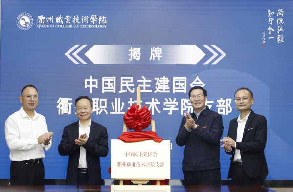 10月24日上午,民建开元网页版支部揭牌仪式在我校举行。省政协副主席、民建浙江省委会主委陈小平 ,民建省委会调研部部长朱修萍,衢州市红十字会常务副会长、民建市委会主委蓝芝苇,衢州市委统战部副部长郑航,我校党委书记徐须实等出席,党委副书记何百通主持。