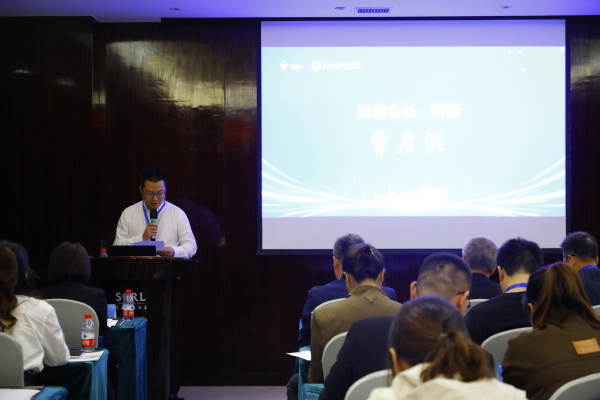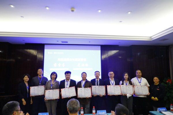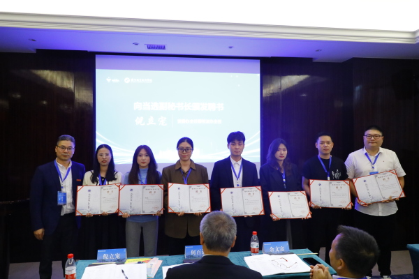 党委副书记何百通为新当选会长、秘书长颁发聘书。