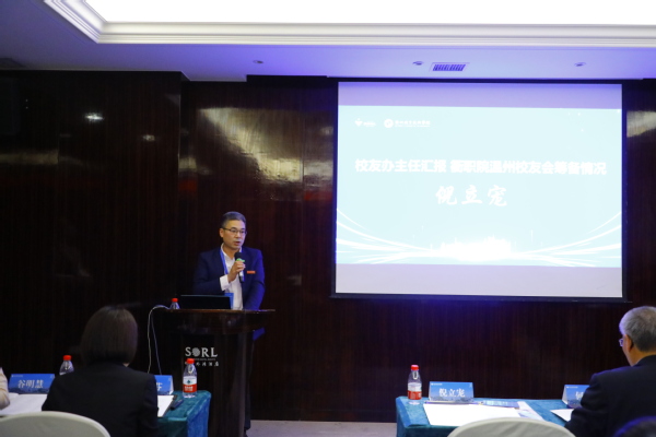校党委办公室主任兼校友办主任倪立宠代表筹备组向大会作温州校友会筹备工作报告。