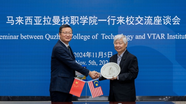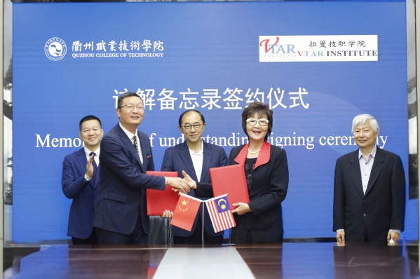 马汉顺讲话。他说,衢职院多年的办学经验形成了较为完善的人才培养和技术服务体系,希望通过此次合作,为拉曼技职学院学生拓展国际视野提供学习机会,为马来西亚职业教育高速发展,应对国际科技化发展趋势培养更多高素质技术技能型人才。